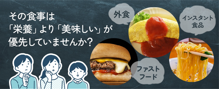ただ、親はまず子供を養わなければなりません。 ですから、どうしても優先させることは金銭的な事が最優先となりがちで仕事優先の毎日となり、疲れて帰宅するから簡単に済ませられるものを選んでしまい、栄養バランスは二の次となっているのが多くの現代家庭事情だと考えられます。 ですが、それでは本末転倒です。 また、外食も“美味しい”を優先している産業です。 保存料の有無や添加物や産地は理想的な原材料なのでしょうか?カロリーと栄養価は比例しないので、高カロリーでも栄養価は高いとは限りません。