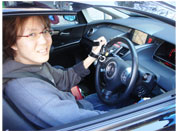 まず驚いたのは頚椎損傷のハンディを抱え若干の段差を車椅子で跨ぐのも苦戦している彼が、スルスルとステアリングを回して特別装備されたレバーで右手でアクセルとブレーキを操作、あまりに普通に運転していた・・・本当にびっくりした!実は助手席に乗るのチョット不安だったんです(苦笑)だって健常者ですら都内での運転は交通量も多くて難しいし何かあった時の対処はどうするんだろう・・・ってね、でも運転している彼を見てそんな不安は吹き飛びました(笑)元F3レーサーの彼の運転技術に関してはこれで文句無し!。